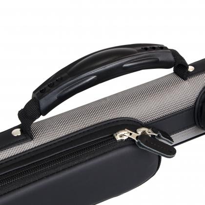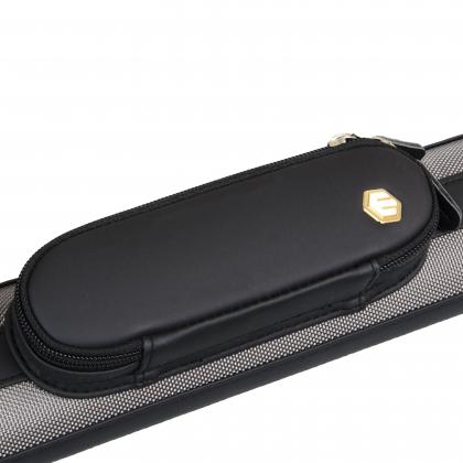 Есть ручка сбоку и наплечный ремень с регулировкой длины. На ремне есть специальная вставка для комфортной носки на плече. Каждая часть кия хранится в отдельном отсеке. С внешней стороны имеются карманы для аксессуаров и удлинителя. Большой карман внутри снабжен дополнительной молнией для надежной фиксации.