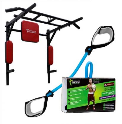 Габариты в положении турник: вылет от стены- 440 мм., длина ручки турника - 980 мм. Габариты в положении брусья: вылет брусьев от стены - 740 мм., расстояние между брусьев - 500мм. с набором трубчатых эспандеров №1 AbsoluteChampion