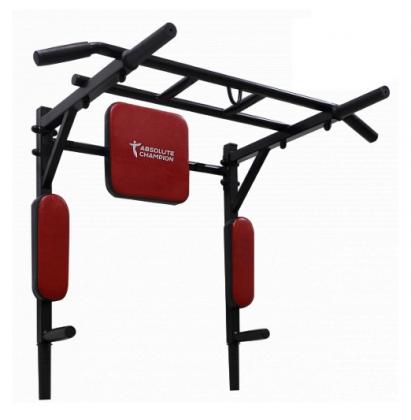 Арт: Турник-брусья "Сила" черный (с черными ручками) с эспандером для ног AbsoluteChampion