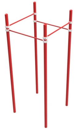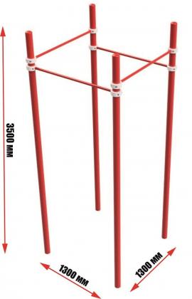 Турник квадратный серии "Воркаут" имеет четыре перекладины, расположенные в форме квадрата. Перекладины устанавливаются с помощью хомутов на желаемой высоте от поверхности.