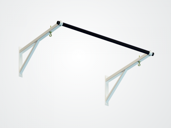 Настенный турник для занятий. Выдерживает нагрузку до 150 кг. Изготовлен из качественного материала с порошковой покраской. В комплекте с турником есть кольцо, для подвеса боксёрского мешка.