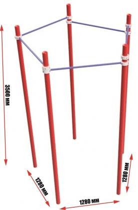 Турник пятигольный серии "Воркаут" имеет пять перекладин, расположенных в форме пятиугольника. Перекладины устанавливаются с помощью хомутов на желаемой высоте от поверхности.
