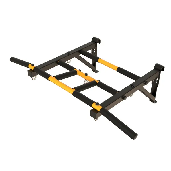 Классический турник на шведскую стенку. Имеет 4 хвата (узкий параллельный, средний,широкий, широкий параллельный)+ дополнительная перемычка для рукохода, уникальные ручки в местах хвата из каучука . 5 подвесов колец для комфортного размещения детских снарядов (канат, кольца, лестница)я. Максимальная нагрузка до 250 кг . Размеры : перекладина 106 см, вылет перекладины от стенки 56 см. Цвет: белый глянец / черный матовый + желтые вставки