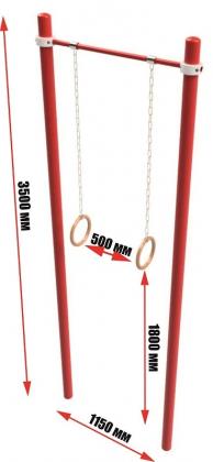 Турник с гимнастическими кольцами серии "Воркаут" имеет перекладину и два кольца, закрепленные к перекладине с помощью цепей. Перекладина и устанавливается с помощью хомутов на желаемой высоте от поверхности.