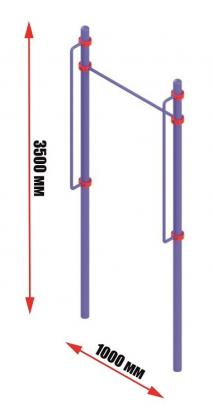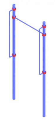 Турник с поручнями серии "Воркаут" имеет перекладину и два поручня . Перекладины и поручни устанавливаются с помощью хомутов на желаемой высоте от поверхности.