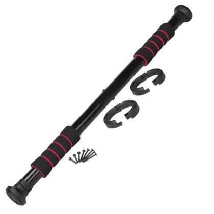 Регулировка длины в диапазоне 66-91 см осуществляется с двух сторон для удобства установки. Надежное крепление в проеме осуществляется за счет скоб и шурупов, которые идут в комплекте (4 скобы, 8 шурупов). Два мягких, нескользящих, неопреновых захвата, имеющих эргономичную форму, обеспечивают максимальный комфорт во время выполнения упражнений.