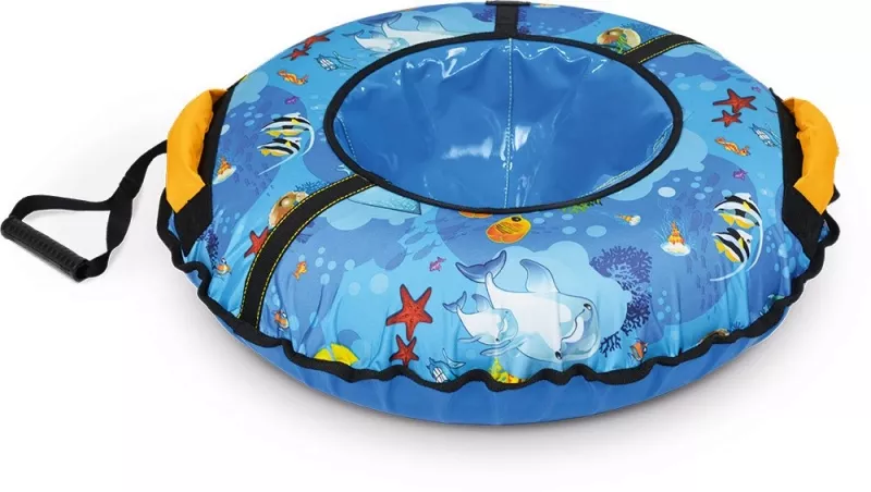Светоотражающие элементы. Крепкие эргономичные ручки, буксировочный ремень. Защитный внутренний клапан с потайной молнией. Устойчивый к морозам материал (до -28 С). Камера R12 в комплекте. Диаметр: чехол – 77 см, тюбинг в накачанном виде – 70 см. Максимальная нагрузка: 70 кг.