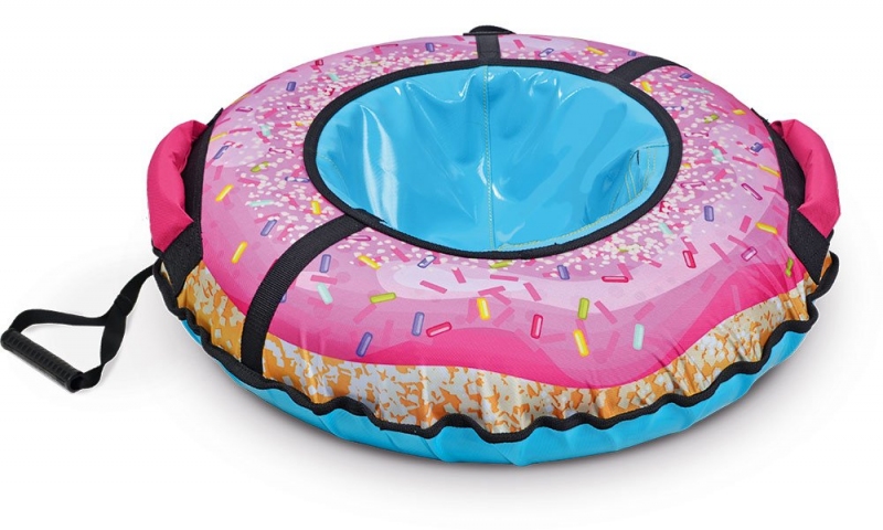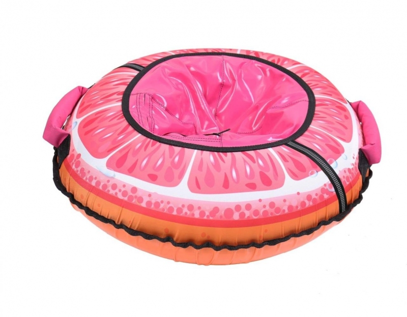 Красочный тюбинг из принтованной ткани подарит незабываемые впечатления от зимней прогулки. Водонепроницаемая ткань из которой изготовлена верхняя часть изделия, создаст дополнительное сопротивление и не позволит выскользнуть из тюбинга. А благодаря высококачественной тентовой ПВХ ткани с глянцевой поверхностью, из которой исполнено дно этой модели достигается идеальное скольжение. Усиленная камера входит в комплекте