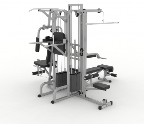 Многофункциональный тренажер, необходимый для физической подготовки спортсменов различных видов спорта. Очень эффективен при формировании сильного и красивого телосложения. Конструкция тренажера включает четыре независимые станции: блок для тяги сверху, блок для тяги снизу, ПЭК-ДЭК и одинарная блочная рамка. Конструкция тренажера предполагает тренировку четырех спортсменов одновременно.