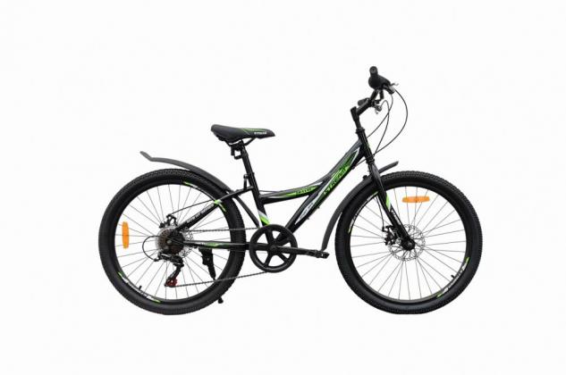 Горный подростковый велосипед. Стальная рама. Размер рамы: 12.5 . Диаметр колес: 24 . Жесткая вилка. 7 скоростей. Система шатунов Prowheel. Задний переключатель скоростей Shimano Tourney RD-TZ50. Манетки Shimano SL-RS35. Дисковые механические тормоза. Двойные алюминиевые обода. Покрышки 24 x2.125 . Спортивное седло. Платформенные педали. Щитки. Подножка.