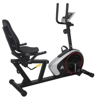 Велотренажер с удобной горизонтальной посадкой и бесшумной магнитной системой нагружения. Нагрузка имеет ручную регулировку с помощью ручки на стойке тренажера, 8 положений. Мягкое регулируемое сиденье с мягкой спинкой. Датчики измерения пульса расположены на рукоятках и позволяют контролировать частоту сердечного ритма во время движения. Как правило, встроенные на тренажерах датчики имеют погрешность измерения. Поэтому для более точного определения частоты сердечных сокращений (ЧСС) рекомендуем использовать нагрудный кардиопояс с часами - монитором, модель DFC W117 (опция, приобретается отдельно). Встроенные колеса позволят переместить тренажер по комнате в случае необходимости. Тренировка на горизонтальном велотренажере является довольно монотонным занятием. Чтобы не заскучать во время тренировки, консоль имеет встроенный держатель планшета. Разместите девайс, и получайте удовольствие от просмотра роликов, фильмов или музыки.