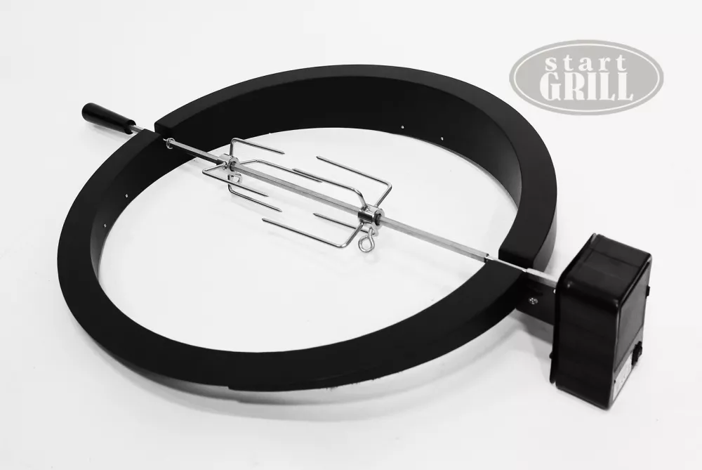 Благодаря мощному мотору вертел способен проворачивать большие куски мяса и обеспечивать равномерное приготовление. Основание вертела имеет специальную форму, которая позволяет плотно закрывать крышку керамического гриля. Установка вертела не требует каких-либо специальных навыков и приспособлений. Легко очищается и имеет антипригарное покрытие. Мотор на батарейках не требует линий электропередач и может использоваться в любом удобном месте. А технология изготовления мотора позволяет экономично использовать ресурс элементов питания.