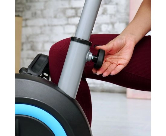 Велотренажер оснащен инерционным маховиком весом 5 кг с возможностью крутить педали в обе стороны. Нагрузка осуществляется с помощью магнитной системы и регулируется механически на 8 уровней.