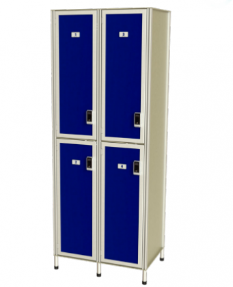 AquaLocer-2L — шкаф для раздевалок с четырьмя ячейками в половину роста. В стандартной комплектации ячейка оснащена двумя крючками на боковых стенках. Опционально можно оборудовать кабинку полкой и штангой с двумя несъемными крючками (вместо настенных крючков).