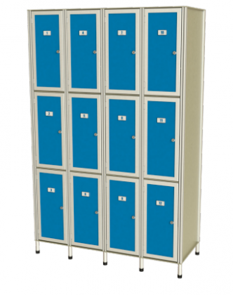 Шкаф для раздевалки АquaLocker-4T состоит из 4-х секций по 3 ячейки (общее количество ячеек в модуле – 12 шт.). Внутри каждой ячейки по желанию заказчика могут быть установлены 2 крючка для одежды. Также как и все шкафы серии «АquaLocker», данная модель выполнена из алюминиевых композитных панелей и алюминиевого профиля и отвечает самым строгим требованиям к мебели для бассейна.