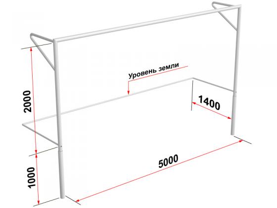 Створ футбольных ворот (штанга и верхняя перекладина) изготовлены из стальной круглой трубы D=76 мм.