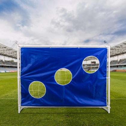 В комплект входят сетка и тент для отработки ударов, что позволит улучшить точность и силу ударов по мячу. Шесть анкеров для крепления к земле обеспечивают надежную установку ворот на любой поверхности — во дворе, на тренировочной площадке или в спортзале.