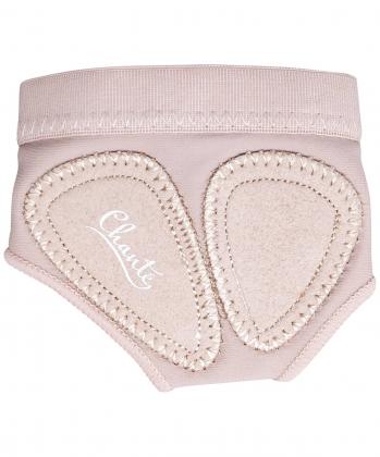 Защита стопы Footie от бренда Chanté выполнена в нейтральном бежевом цвете. Антискользящая замшевая подошва обеспечивает долговечность и надежное сцепление с полом, дышащая сетка с эффектом памяти гарантирует комфорт и легкость, а прочная межпальцевая перегородка предотвращает разрыв ткани.