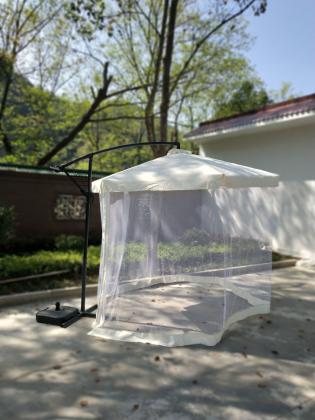 Садовый зонт - обязательный предмет в каждом саду, который защитит не только от дождя, но и от знойного полуденного солнца. Изготовлен из прочного аллюминия, что обеспечивает долгий срок службы зонта. Большой купол - 300 см - позволяет вместить несколько человек, а возможность наклона и наличие москитной сетки делает использование зонта более удобным.