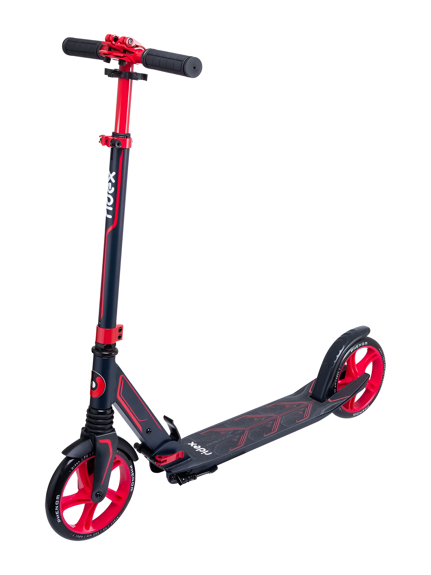 Самокат Phenom — это отличный выбор для тех, кто ценит максимальный комфорт, надежность и скорость передвижения по городу. Он оснащен передним амортизатором и полиуретановыми колёсами диаметром 200 мм, что значительно снижает вибрации и обеспечивает мягкое движение по любым типам городских покрытий.